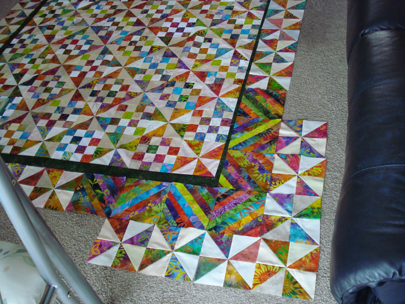 I used scrappy neutrals as a contrast to the batiks.